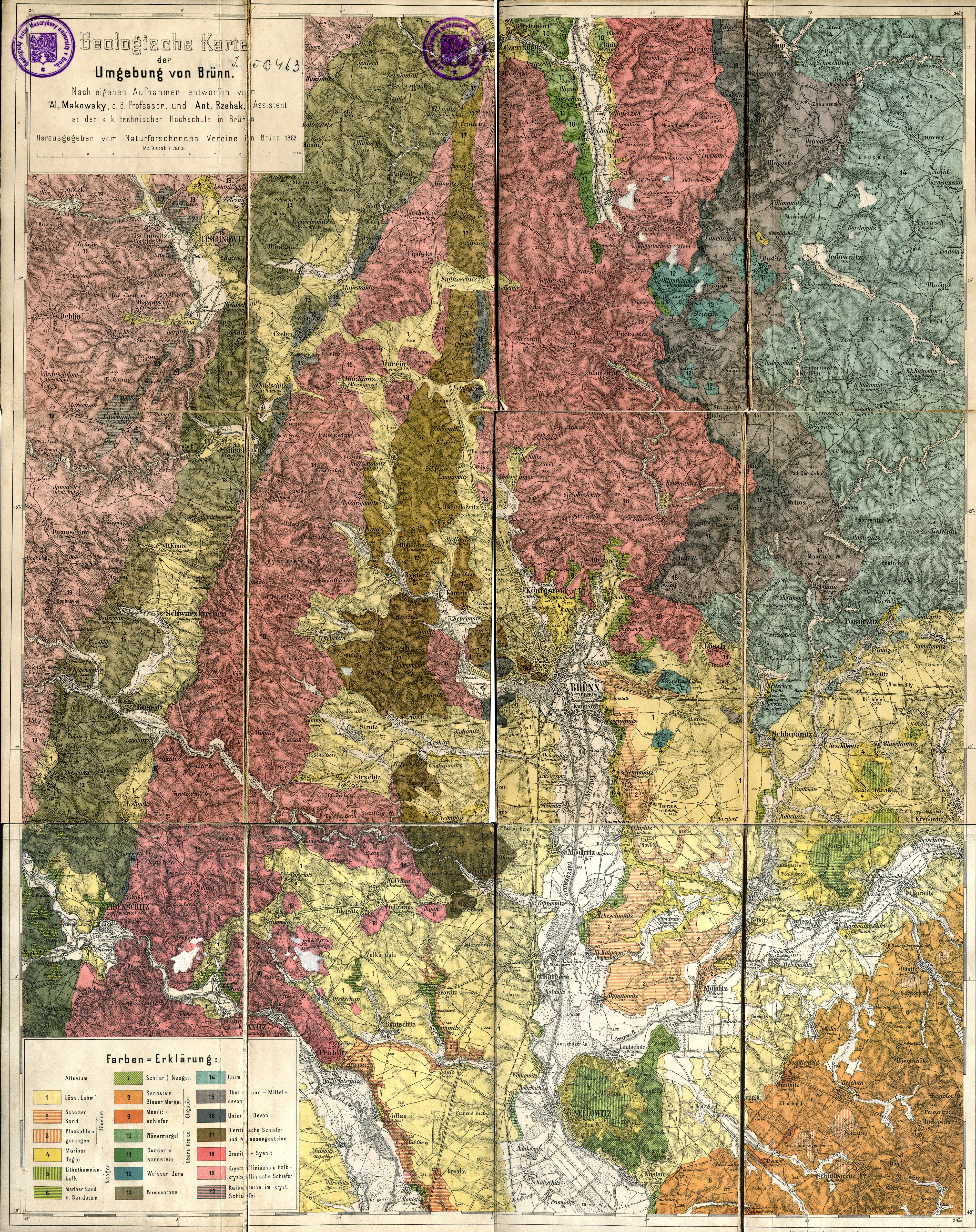 Geologische Karte der Umgebund von Brünn von Al. Makovsky und Ant. Rzehak 1883, 1:75000