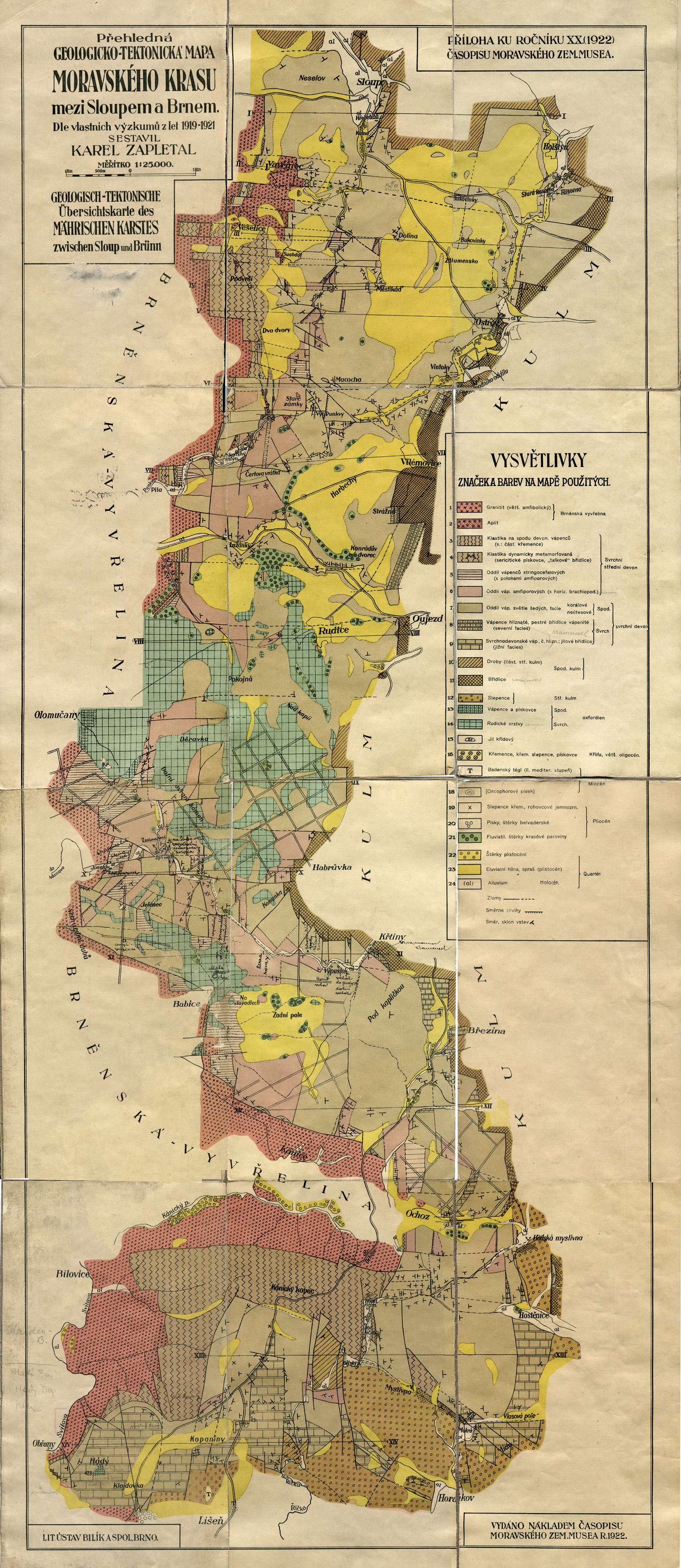 Zapletalova Geologicko-tektonická mapa Moravského krasu 1921, 1:25000